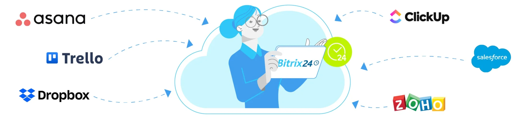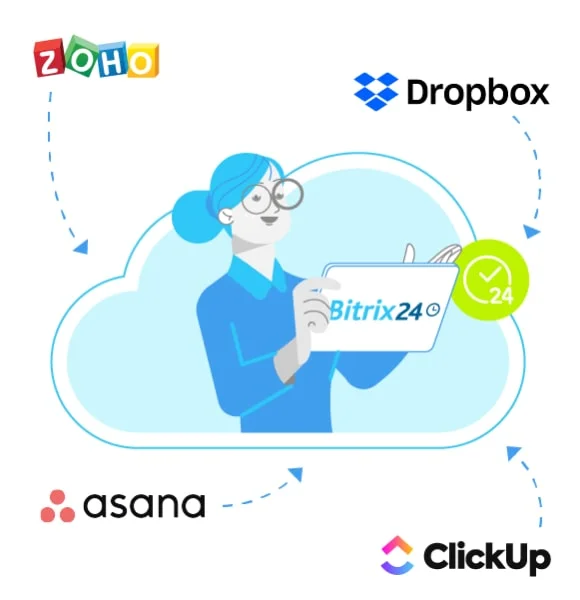 Bitrix24 comes with several dozen integrations available in Bitrix24 Market. You can also create your own apps using our REST API.