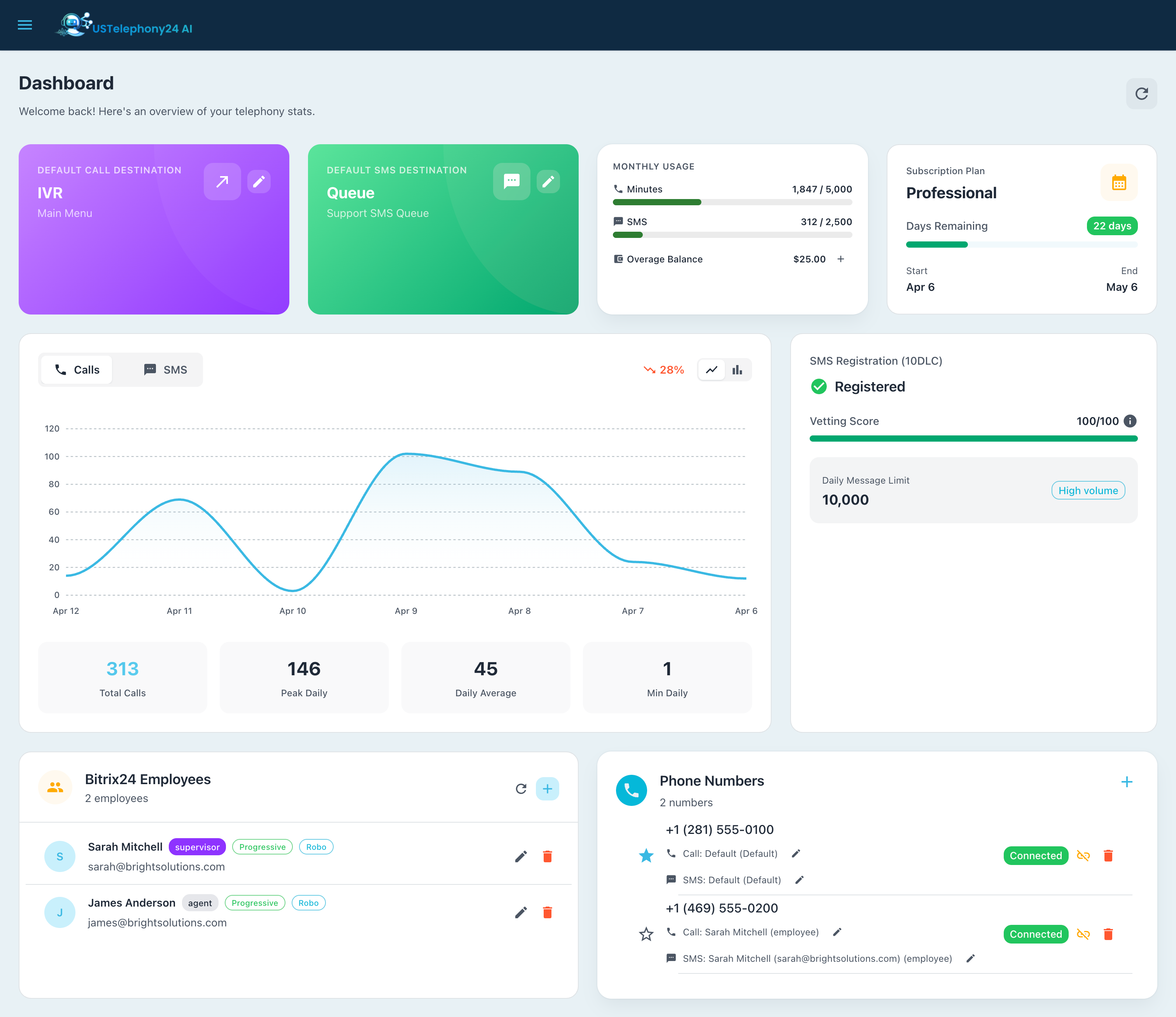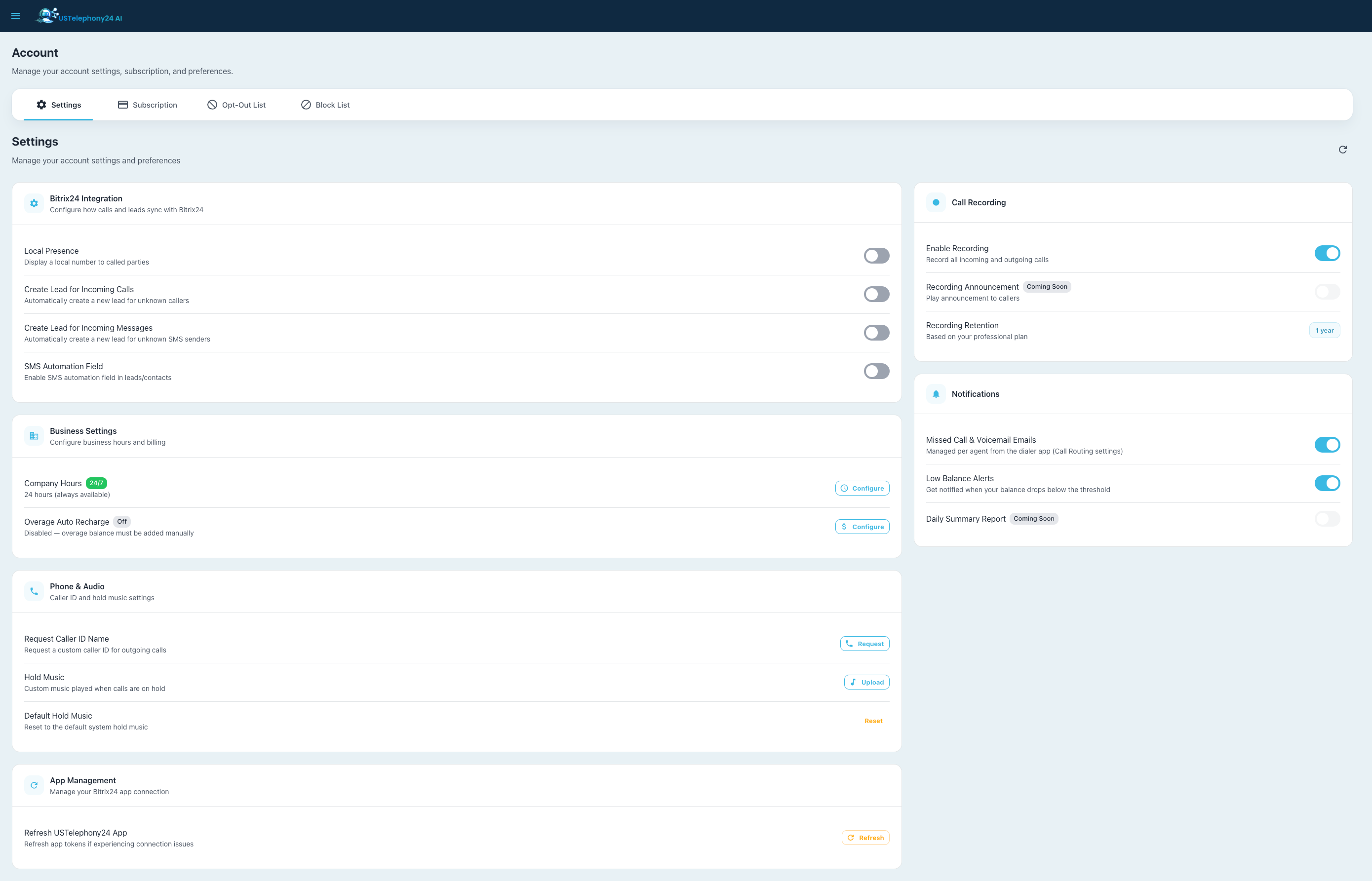 USTelephony24 AI is an enterprise-grade cloud telephony platform built exclusively for the Bitrix24 CRM ecosystem. We provide businesses with a complete voice, SMS, and contact center solution — all managed from within Bitrix24.