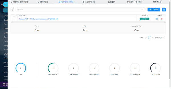 The solution enables the automation of processing incoming and outgoing invoices, including their registration, data recognition, and cost allocation. The system utilizes neural networks for automatic field completion and ensures convenient document management at all stages. Features include invoicing, cost allocation by centers and expense types, as well as integration with external accounting systems. Start your free 14-day trial period. Cost per year €360 (netto)
