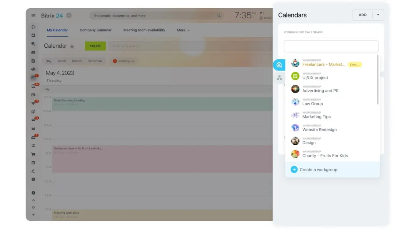 Pro tip: Use Bitrix24 calendars to support weekly planning, async updates, reviews, and retrospectives.