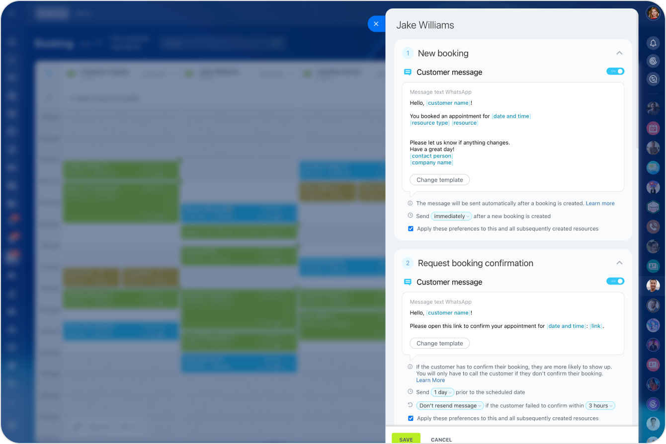 Missed appointments cost time and money. Booking in Bitrix24 helps to prevent gaps in your schedule with smart notifications, confirmations, and waiting lists.