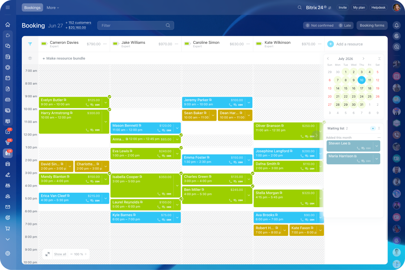 Whether you run a barbershop, beauty salon, clinic, or rental service, booking in Bitrix24 fits naturally into your daily workflow – while giving you the tools of a much larger operation.
