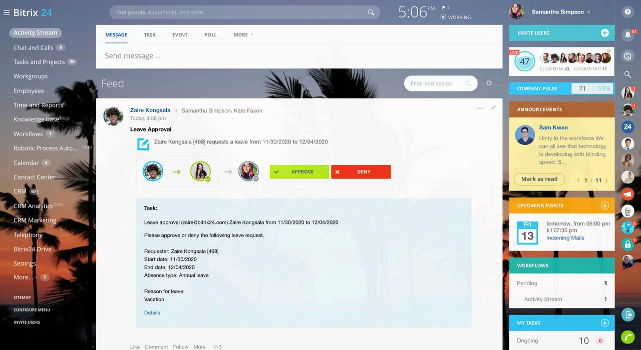 You can automate various repetitive HR processes, including scheduling interviews, updating payroll information, and leave management. By using AI-driven workflows, Bitrix24 minimizes manual intervention, allowing HR staff to focus on strategic initiatives.